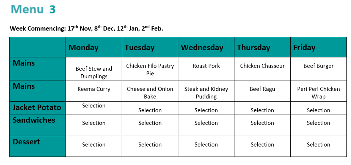 We make our lunch service a good experience for pupils, staff and additional guests, we offer a fresh and innovative service bringing our lunch times alive, at lunch times there is always a choice of 3 meals which are all nutritionally balanced, fresh fruit and fresh fruit salad is also available as a daily alternative too our desserts.